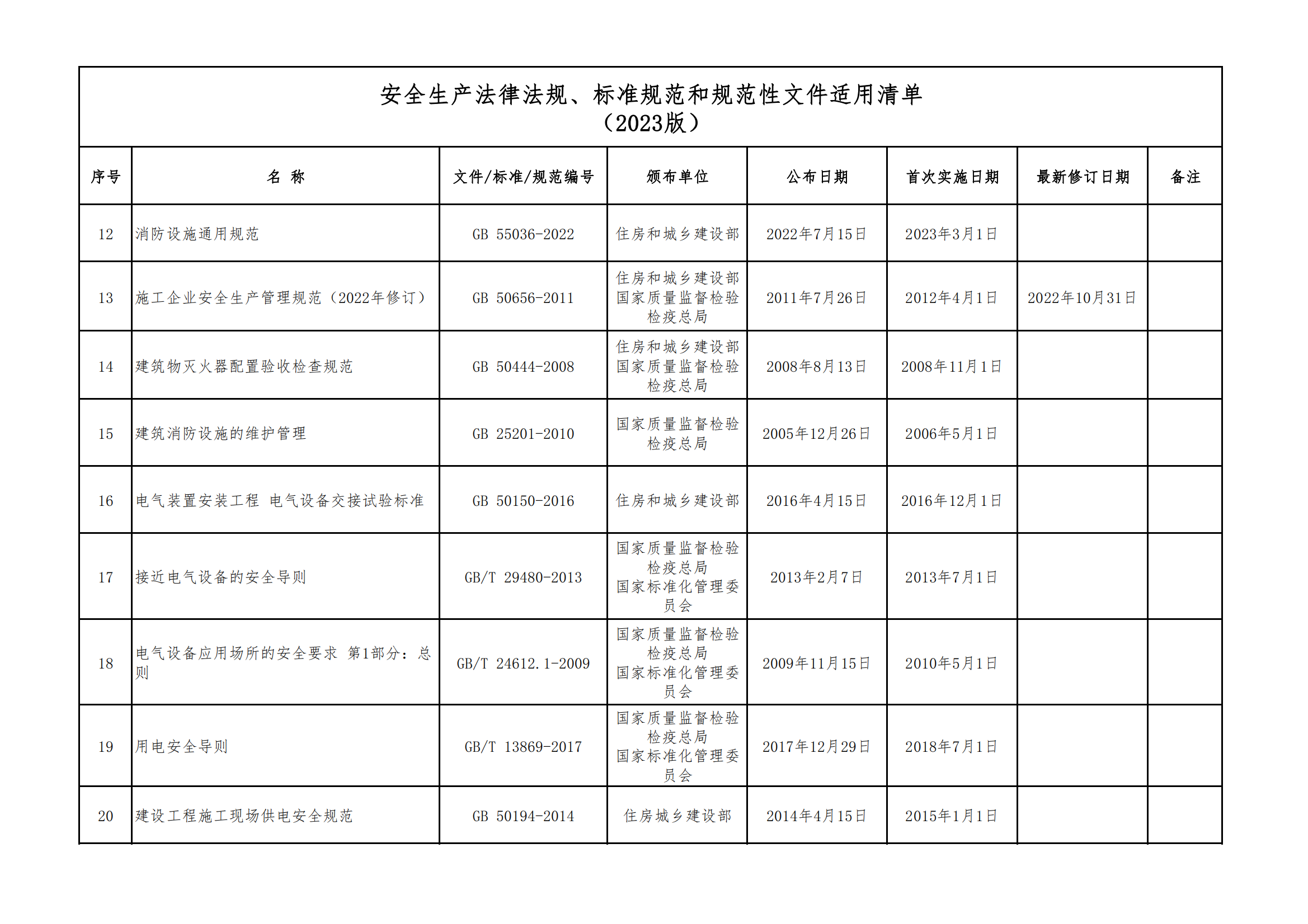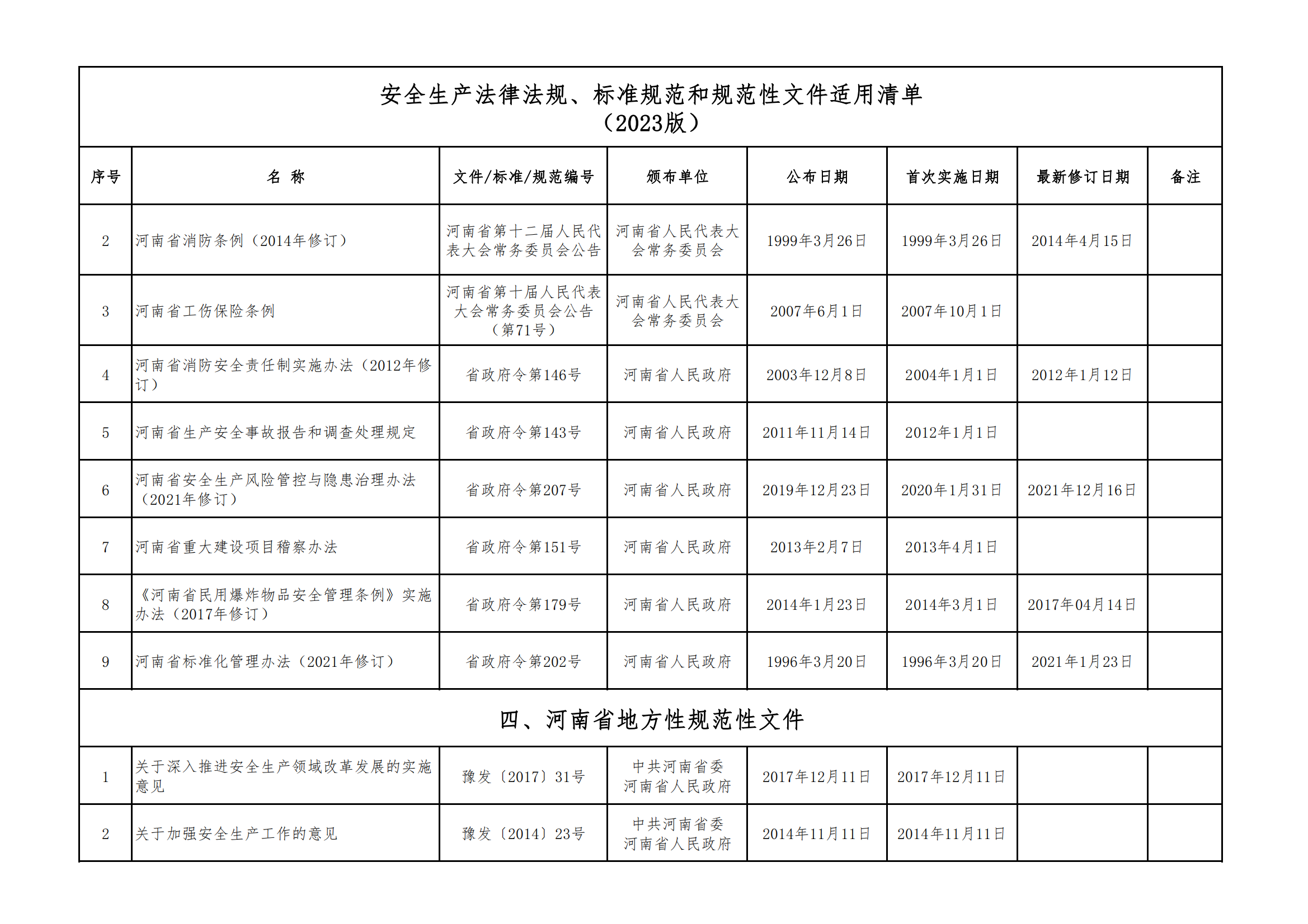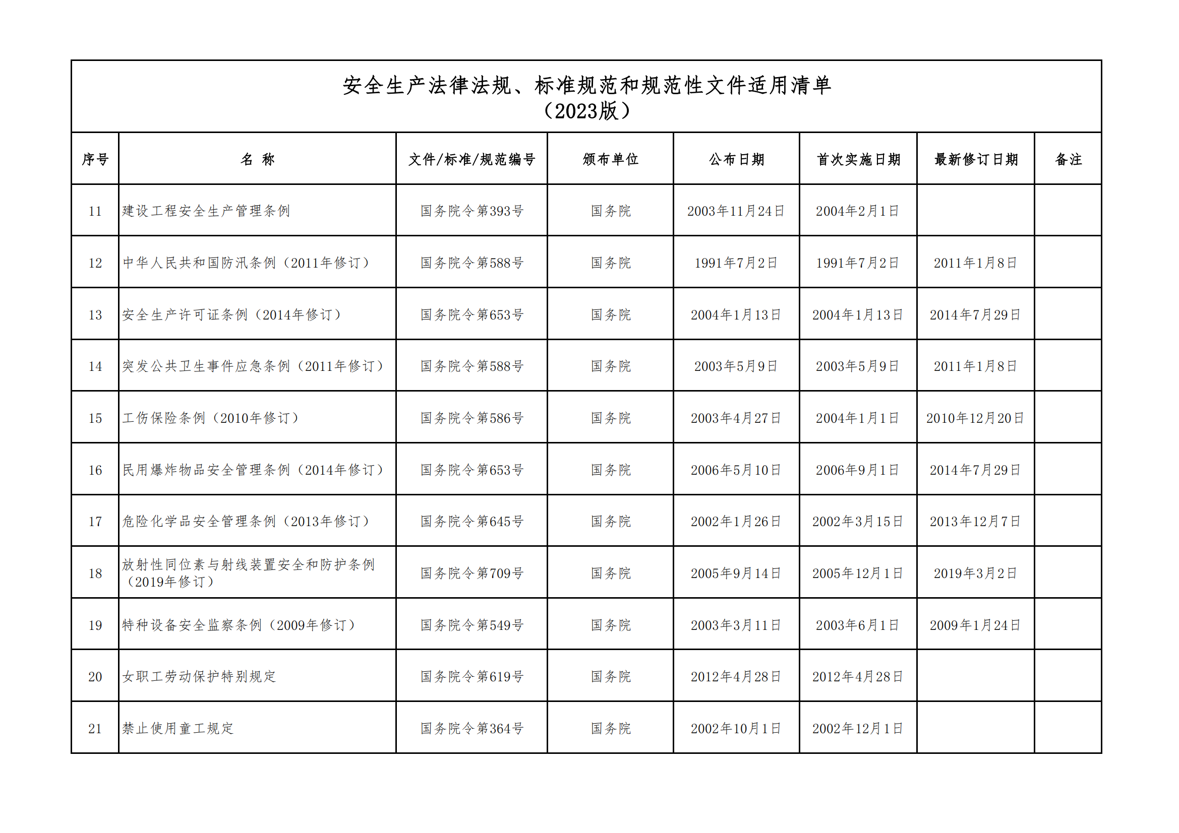 安全生產(chǎn)法律法規(guī)、標(biāo)準(zhǔn)規(guī)范和規(guī)范性文件適用清單