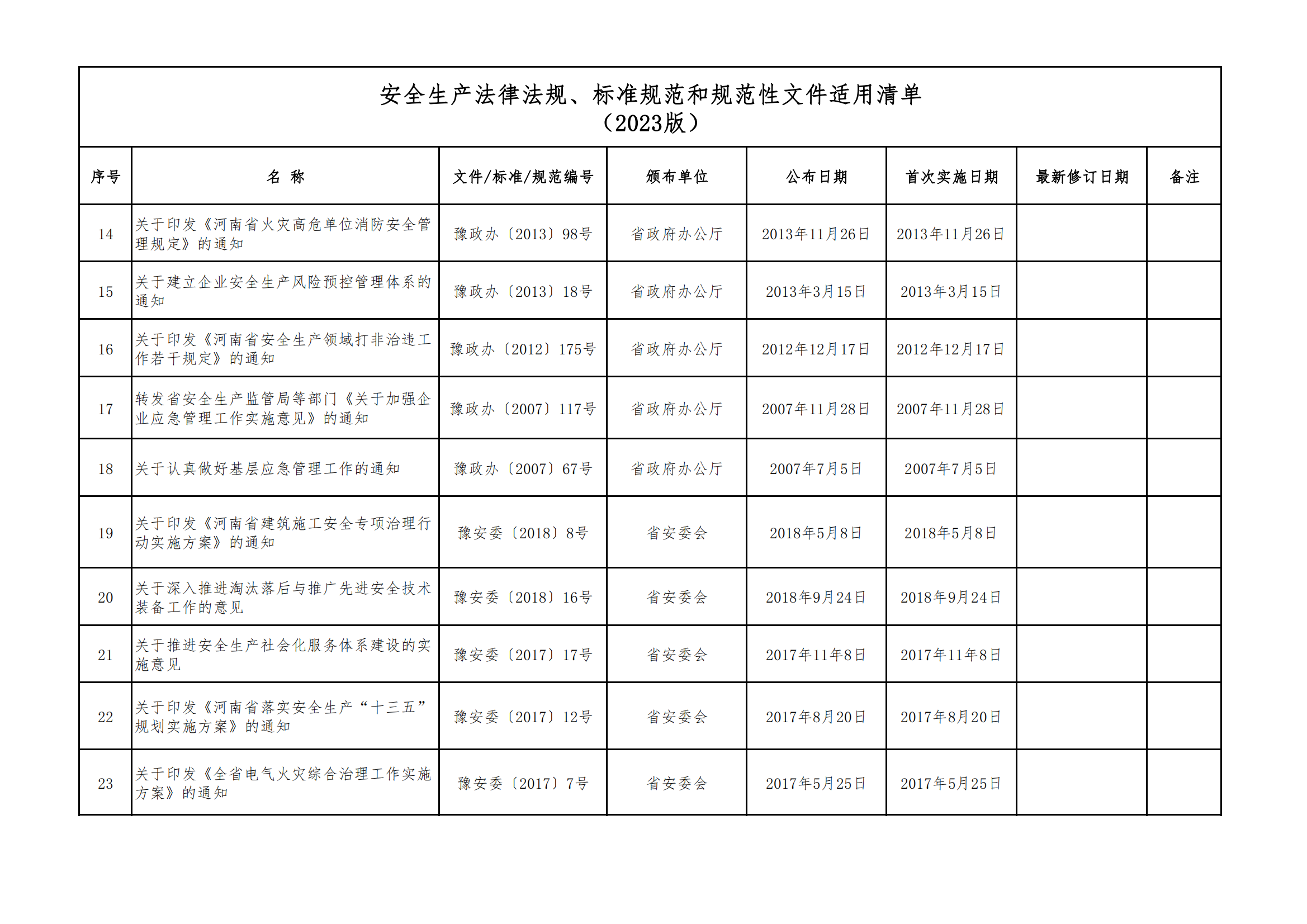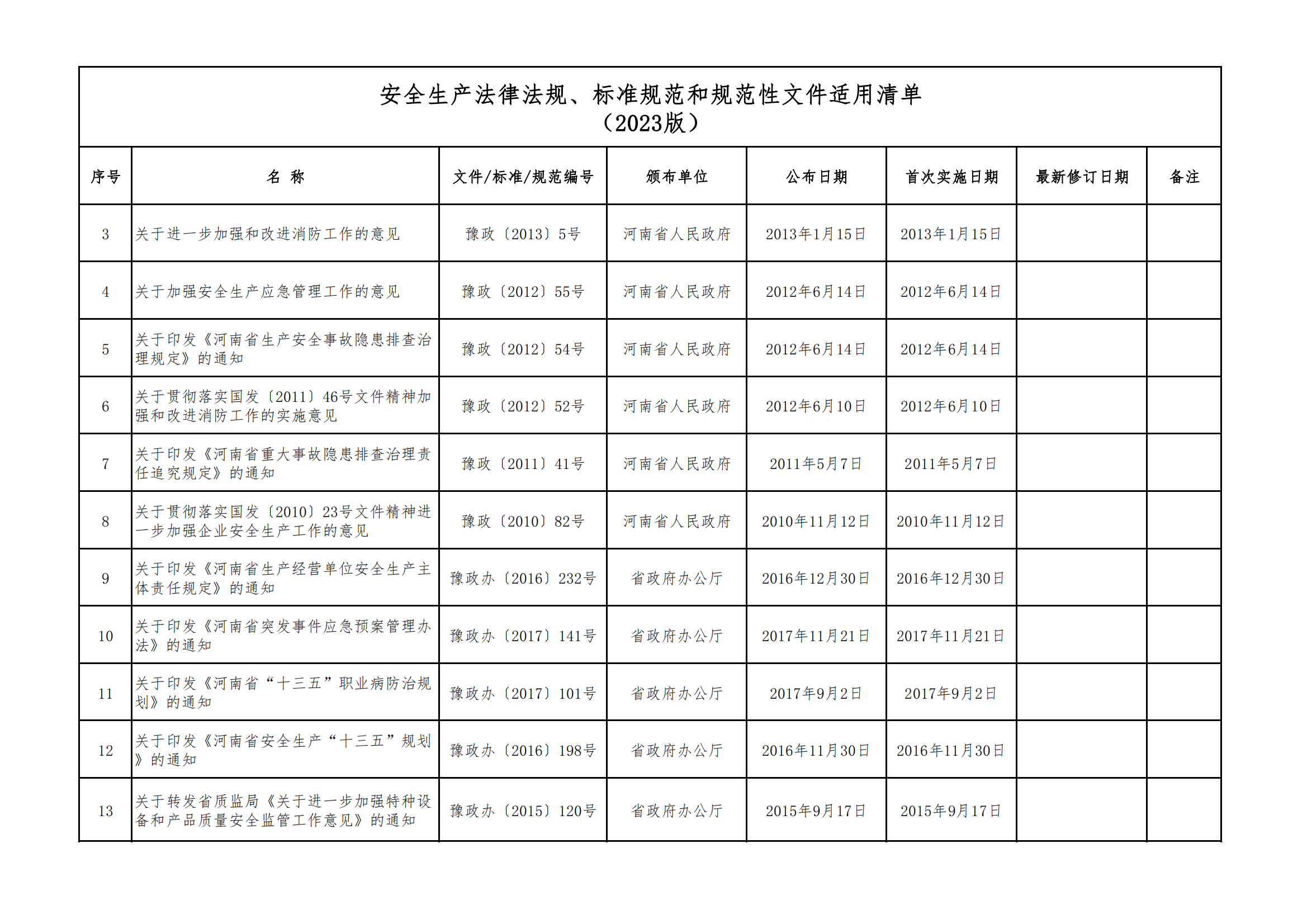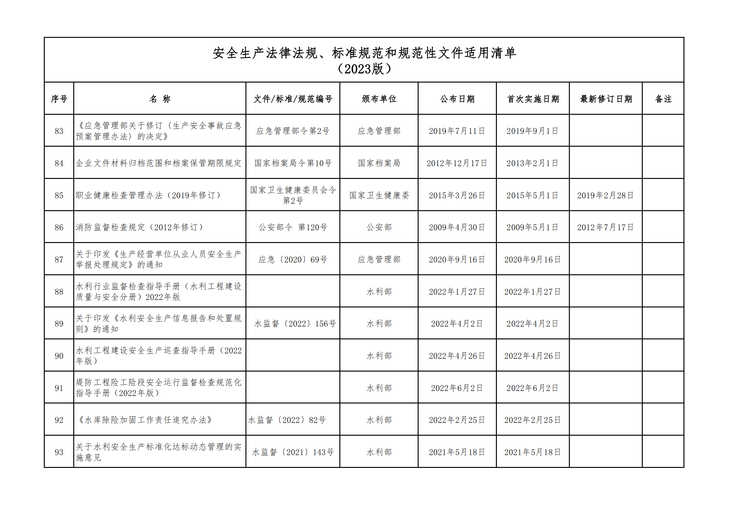 安全生產(chǎn)法律法規(guī)、標(biāo)準(zhǔn)規(guī)范和規(guī)范性文件適用清單