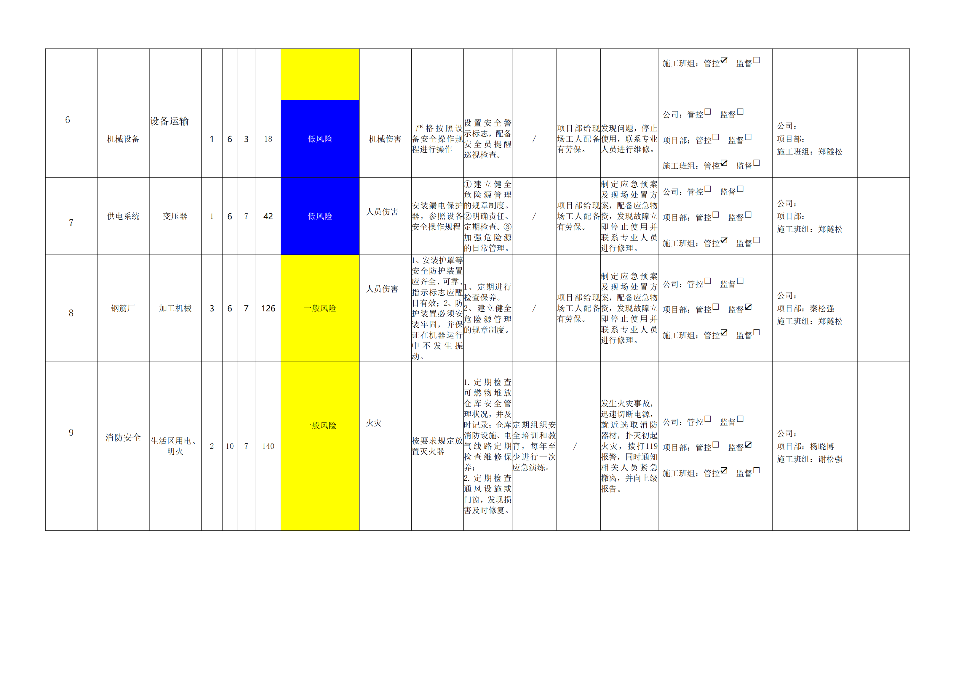小浪底南岸灌區(qū)7標(biāo)項(xiàng)目危險源風(fēng)險分級管控清單(8月)