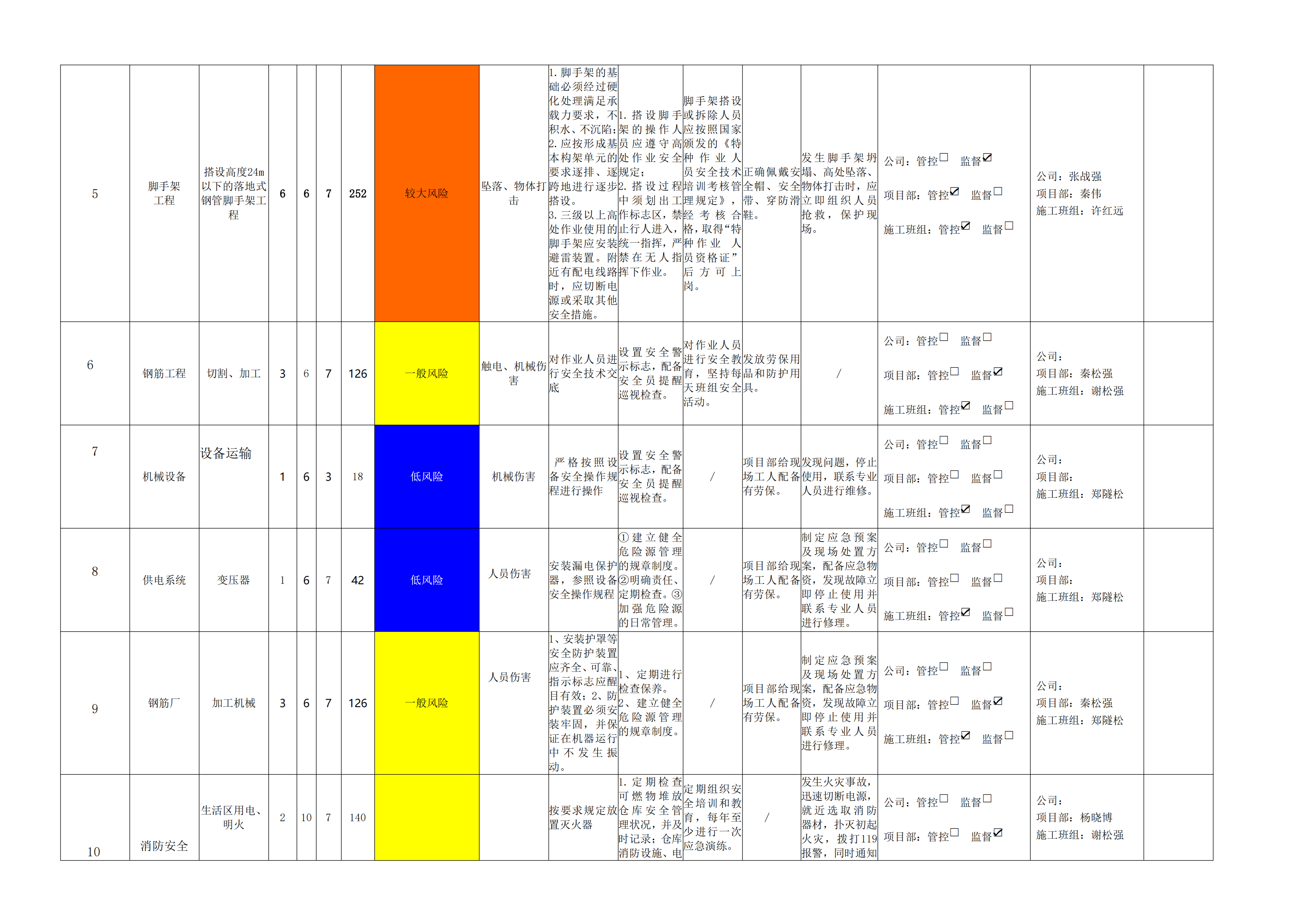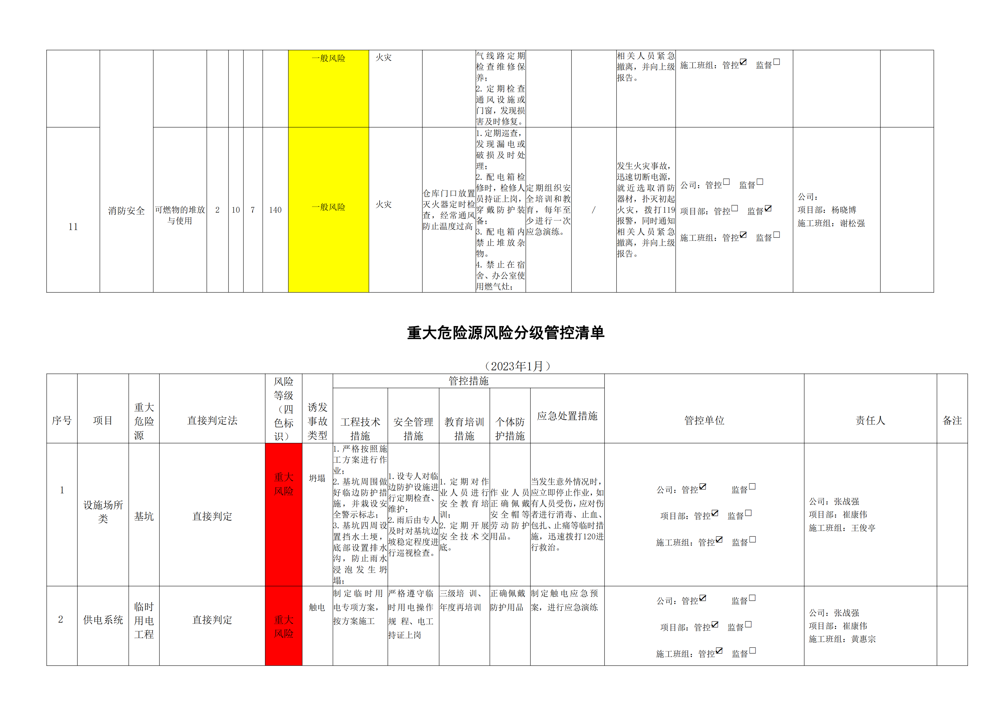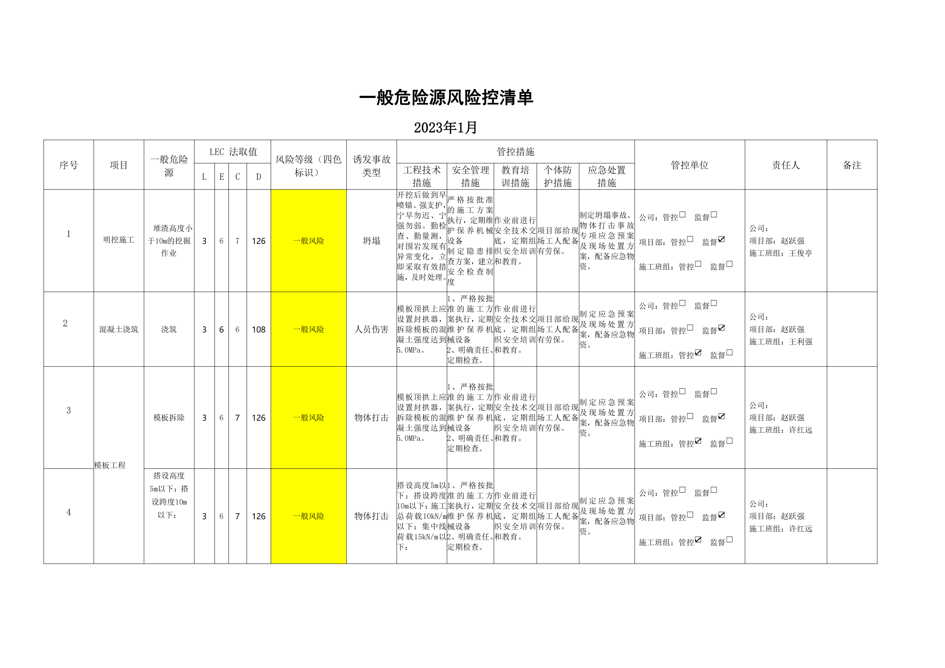 小浪底南岸灌區(qū)7標(biāo)項(xiàng)目危險(xiǎn)源風(fēng)險(xiǎn)分級(jí)管控清單(1月)